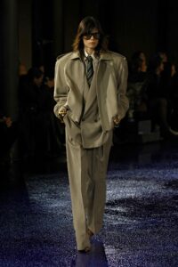 “En lugar de hablar a través de adornos o rellenos, los tejidos y la construcción precisa dan forma a las prendas. Las formas y volúmenes puros se derivan de la construcción y el corte”, explicó Vaccarello tras el glamouroso evento.